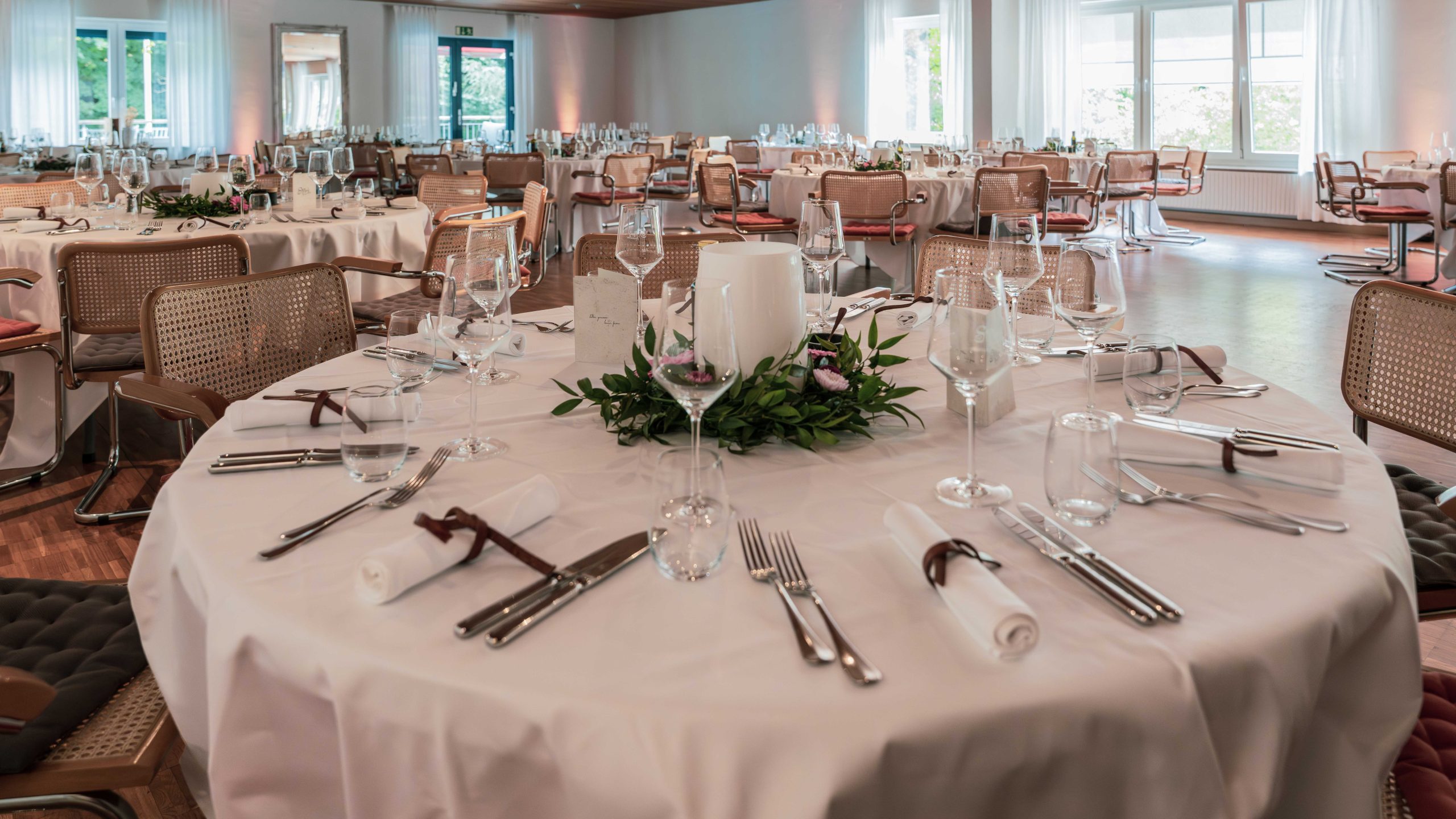 Der Saal im Stiller’s Restaurant bietet eine elegante und vielseitige Eventlocation, ideal für eine Vielzahl von Veranstaltungen. Ob für intime Familienfeiern, Firmenmeetings oder große gesellschaftliche Events, der Saal kombiniert stilvolle Eleganz mit moderner Ausstattung und einer warmen Atmosphäre. Große Fenster sorgen für viel Tageslicht und bieten einen herrlichen Blick auf die Natur. Flexibel gestaltbar, passt sich der Raum jeder Veranstaltung an, um unvergessliche Momente zu schaffen.